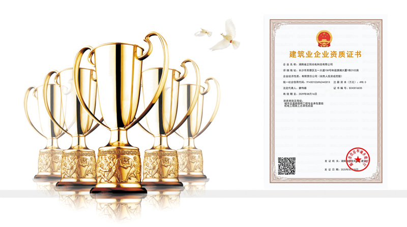 湖南省正陽(yáng)光電科技有限公司是一家從事亮化工程及大型燈光藝術(shù)的設(shè)計(jì)、制作、安裝和維護(hù)于一體的專(zhuān)業(yè)化公司。公司資質(zhì)齊全、管理嚴(yán)謹(jǐn)、技術(shù)先進(jìn)、實(shí)力雄厚,取得了城市及道路照明工程專(zhuān)業(yè)承包壹級(jí)資質(zhì)、照明工程設(shè)計(jì)專(zhuān)項(xiàng)甲級(jí)資質(zhì)、機(jī)電工程施工總承包貳級(jí)資質(zhì)、施工勞務(wù)等資質(zhì)、國(guó)家高新技術(shù)企業(yè)、國(guó)家“重質(zhì)量·守誠(chéng)信”示范企業(yè)。